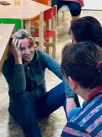 Náplň:Rovnoměrně vyvážené teoretické a praktické seznámení s postupy poskytnutí první pomoci u traumatických a interních stavů (zhodnocení události, výběr a postup volání na tísňovou linku, uvolnění dýchacích cest, kardiopulmonální resuscitace dospělého a dítěte, první pomoc při úrazech a další stavy ohrožující člověka na zdraví a životě.). Zajištění simulací - modelových situací, kde si posluchači vše vyzkouší prakticky v reálném dění. Součástí školení je seznámení s použitím Automatického externího defibrilátoru.